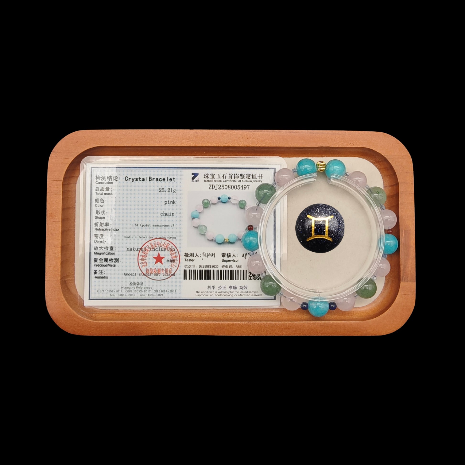 Each bracelet is meticulously crafted with 100% natural crystals, ethically sourced and polished by hand. Includes a professional certification report for authenticity and purity.